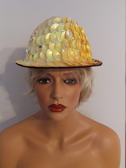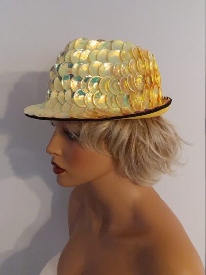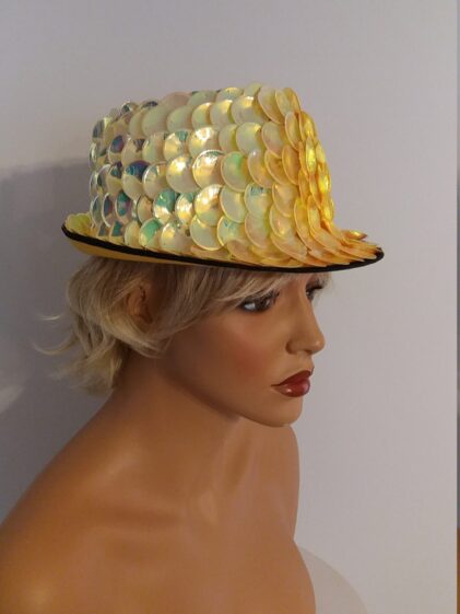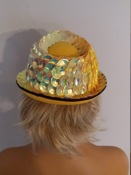 Linen base Hat with YELLOW large beads – nice Headpiece ! ( Please see all pictures ! )