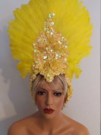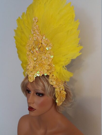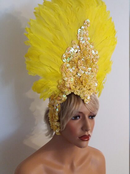 YELLOW Duck Feather Headpiece, with Yellow Sequins ! ( Please see all pictures ! )