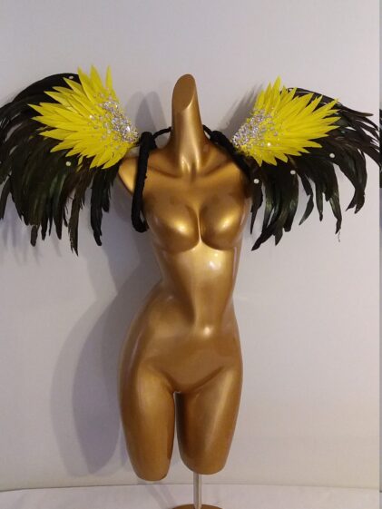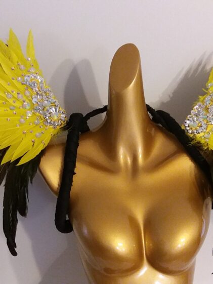 Large YELLOW real Rooster Feather Wings with detachable Feather Pads ! ( Please see all pictures ! )