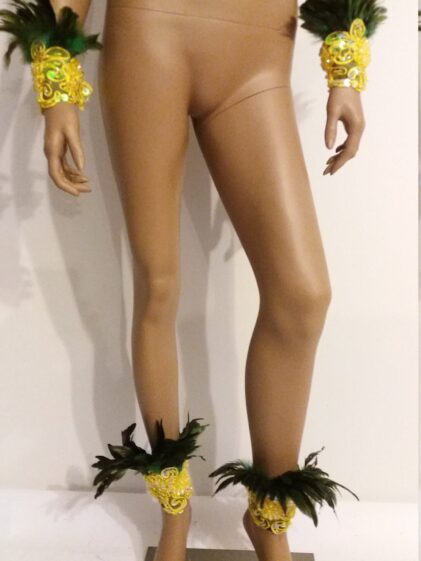 | Yellow Beads+Green Feather | Yellow Bikini Set-3p, Arm+Leg Cuffs-4pc. |